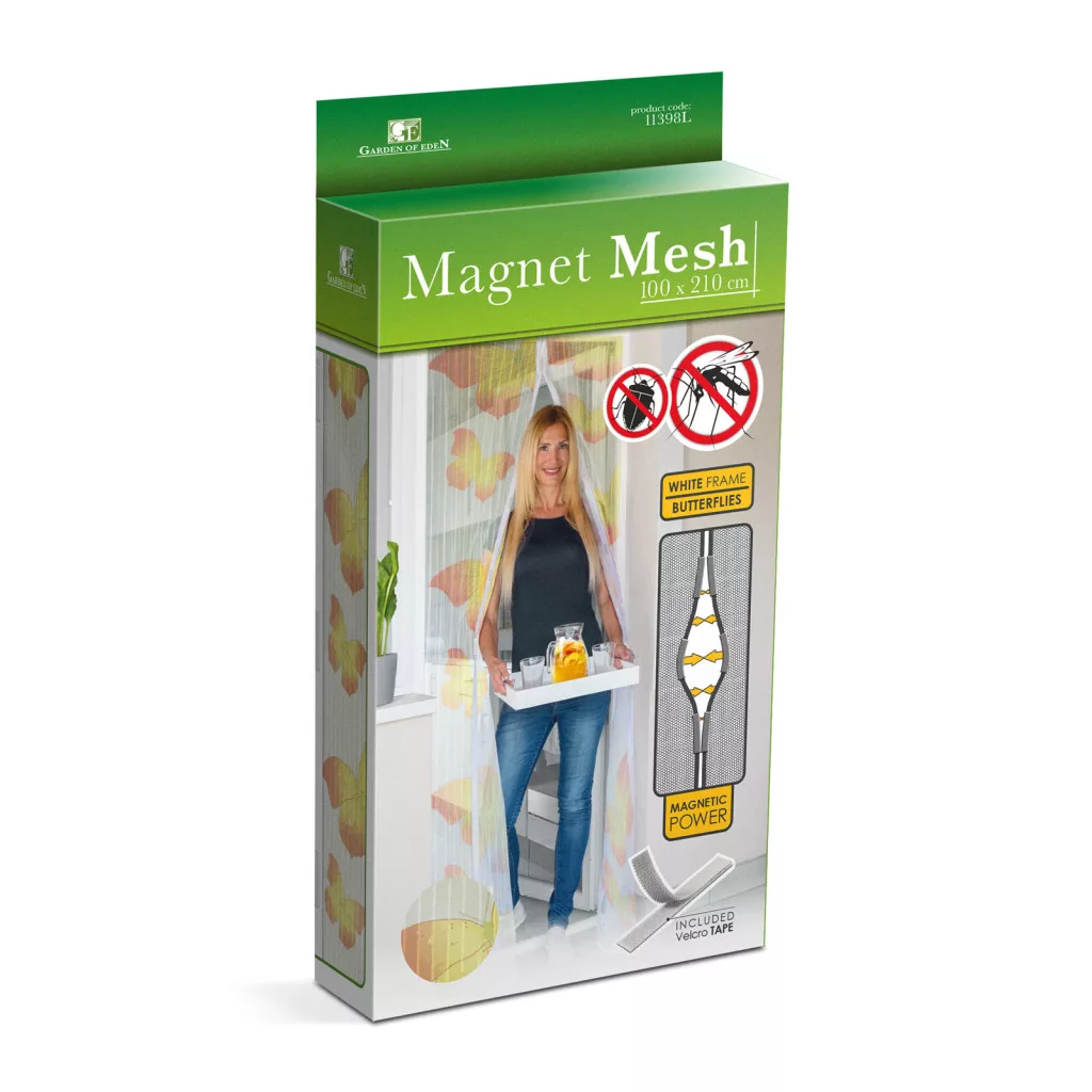 Szúnyogháló függöny ajtóra - mágneses - 100 x 210 cm - sárga pillangós