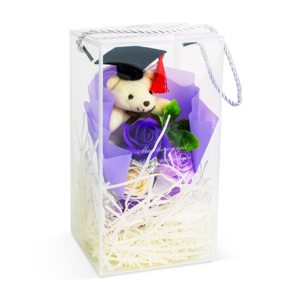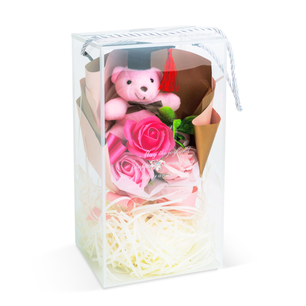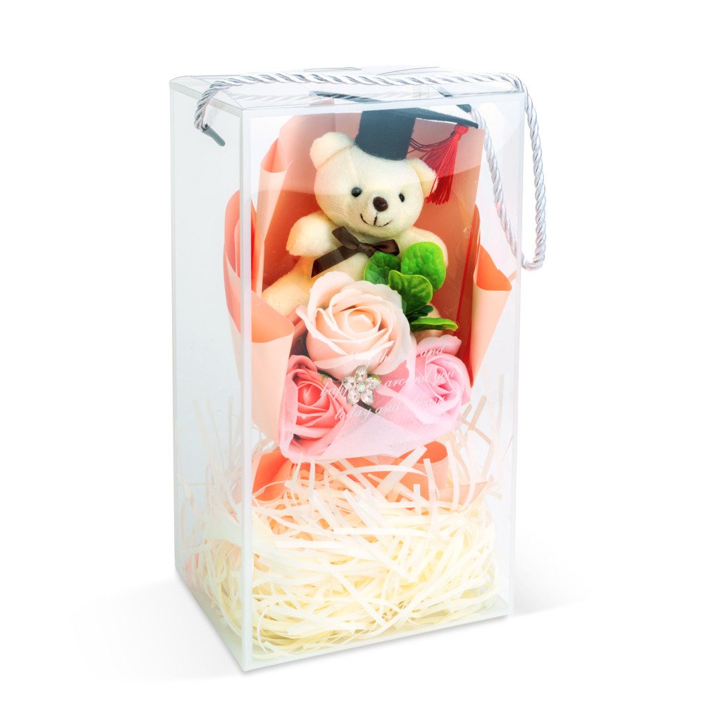 Lepje meg szerettét egy különleges ajándékkal! Ezzel a díszdobozos macival felejthetetlen lesz az ünnep, legyen szó ballagásról, évfordulóról, eljegyzésről, karácsonyról vagy akár születésnapról, névnapról. A csomag tartalmaz egy aranyos plüss mackót és egy szál virágot. A mackó és a virág, matt, elegáns papírba van csomagolva. A kompozíció egy plexi dobozban kerül szállításra, melynek exkluzivitását mutatja, hogy az alsó részét fehér papírszálakkal bélelték ki. Ez a bájos ajándék tökéletes lehet romantikus, évfordulós alkalmakra, mint például Valentin-nap, születésnapok, vagy egyéb ünnepek alkalmával. A meglepetés garantált!