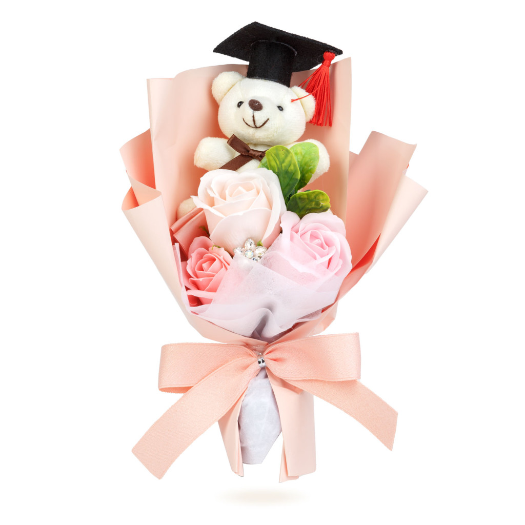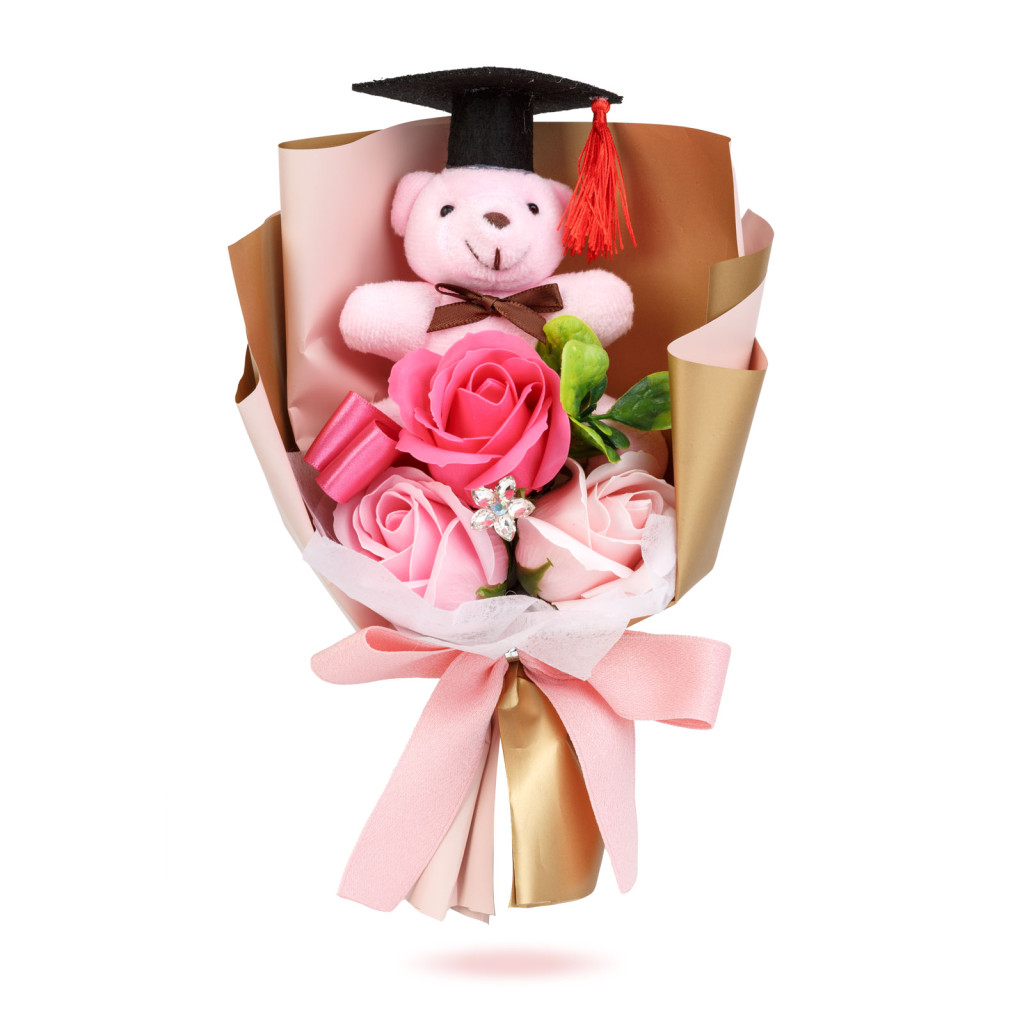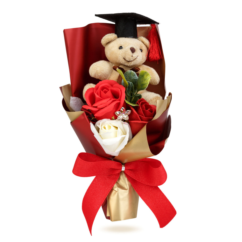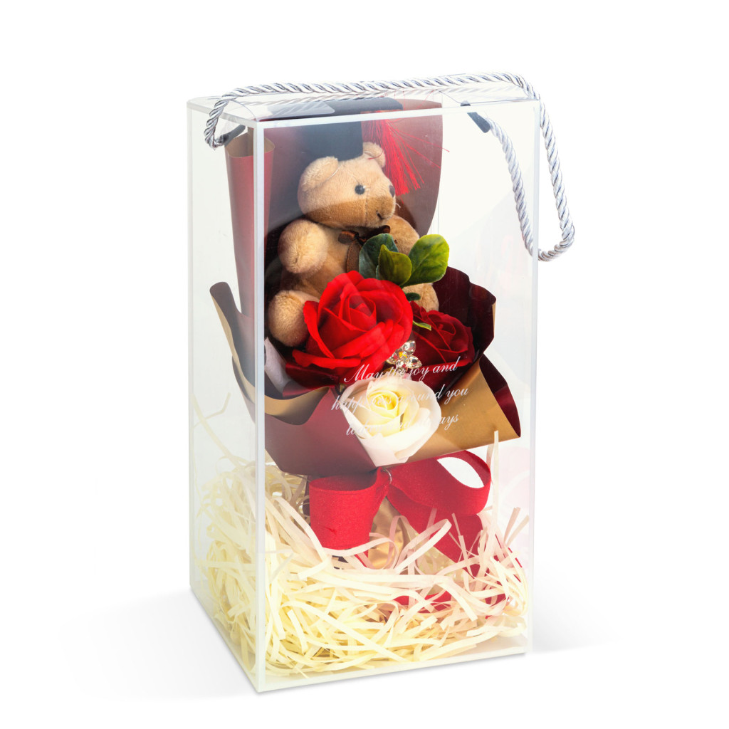 Műnövény dekoráció - rózsa, macival - 14 x 10,5 x 26 cm
