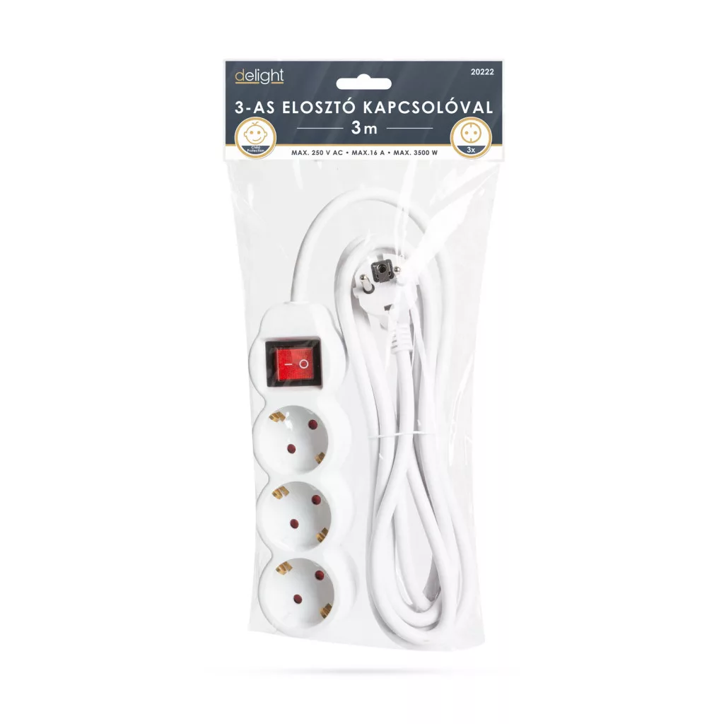 Általános, fehér elosztó kapcsolóval, amely használata javasolt háztartásban, irodákban. Jó minőségű, vastag szigetelése megvédi a kábelt a sérülésektől, a kábel esetleges megtörésétől.