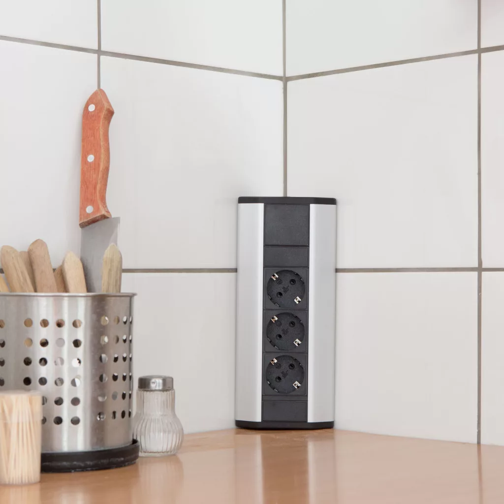 Ennek a sarokban helyezhető elosztónak köszönhetően helyet takaríthat meg bármely felületen. Ideális lehet konyhákba, szobákba, irodákba és minden olyan helyen, ahol nem lehetséges villamoshálózat, konnektor kiépítése. Használatával elkerülhető a falak vésése vagy a munkapult, bútorlap nagymértékű vágása. A sarokba helyezhető elosztó helyet takarít meg Önnek a falfelületen is, így például több hely marad a konyhapult felett kések, konyhai eszközök rögzítésére, felakasztására.