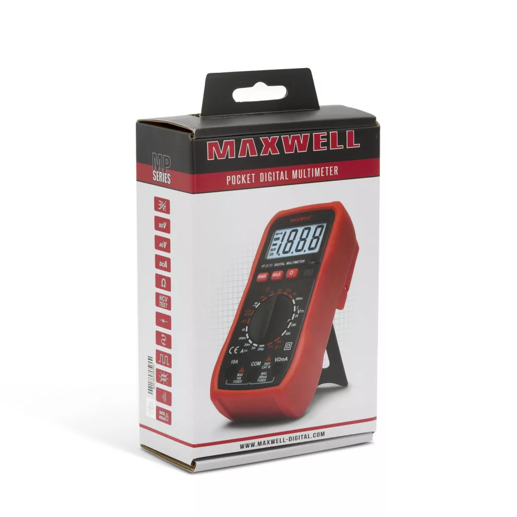 A Maxwell műszerek új MP sorozata a kompakt méretű műszerek kategóriáját erősíti. Alapfunkcióin kívül fényérzékelős automata háttérvilágítással és érintés nélküli feszültség kereséssel van ellátva. Strapabíró készülékháza biztosítja a probléma mentes használatot minden körülmények között.