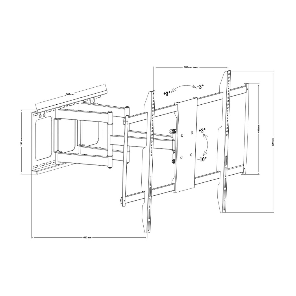 Fali tartókonzol TV-k, monitorok és egyéb VESA konzol kompatibilis eszközök rögzítéséhez. Nagy teherbírású, acélból készült, dupla karral rendelkező konzol, amely segítségével 120"-os kijelző méretig felszerelhetőek a TV-k.