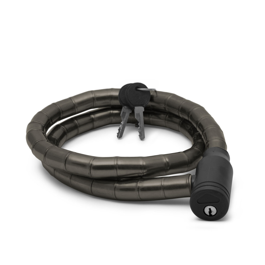Kerékpár görgős lakat (kábelzár). A bevont acélkábel ellenállóbb a vágó támadásokkal szemben. Minőségi zárszerkezet, 2 db kulccsal.