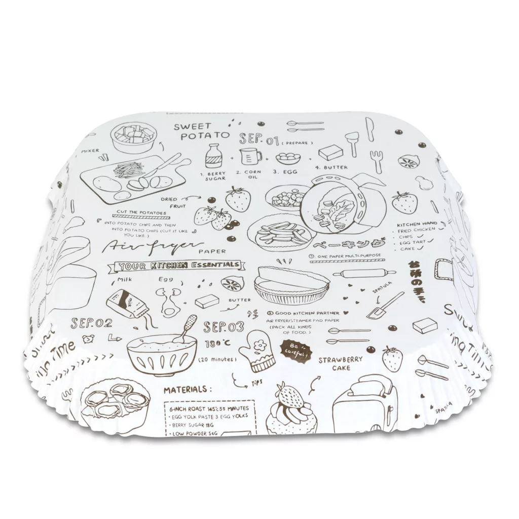 Air fryer sütőpapír - olaj nélküli sütőhöz - mintás, négyzet - 23 cm - 50 db / csomag