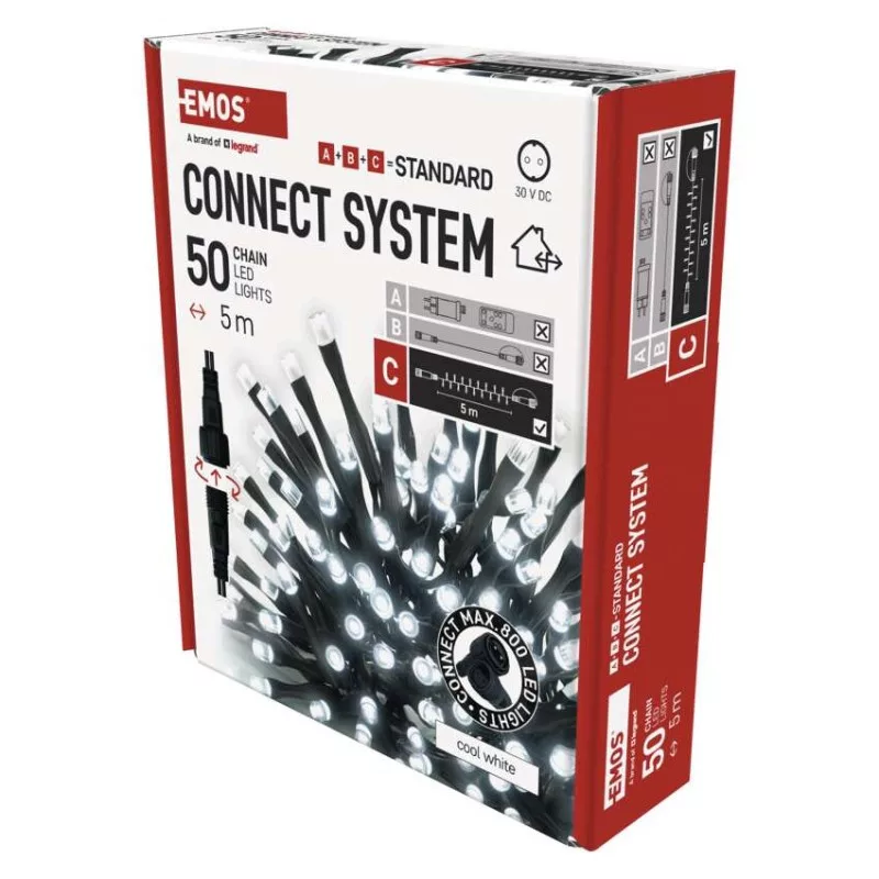 Standard LED sorolható karácsonyi füzér, 5 m, kültéri és beltéri, hideg fehér