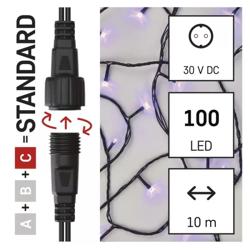 Standard LED sorolható karácsonyi füzér, 10 m, kültéri és beltéri, lila