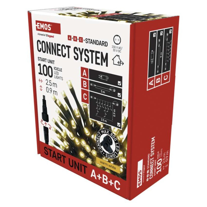 EMOS CNT Kezdő készlet – jégcsapok 2,5m 100LED IP44 12W, meleg fehér, időz.