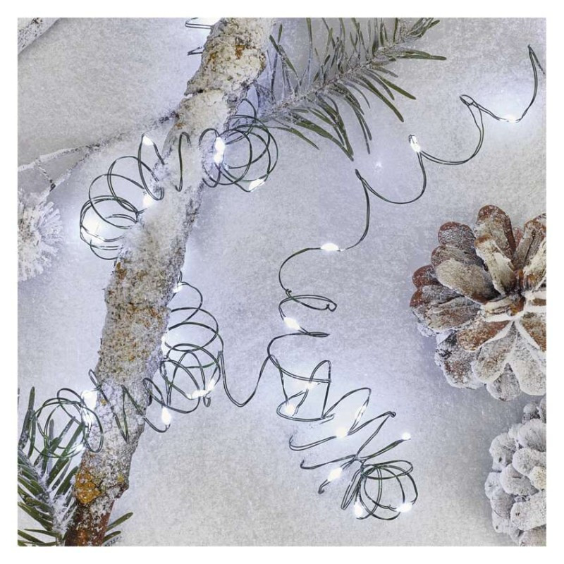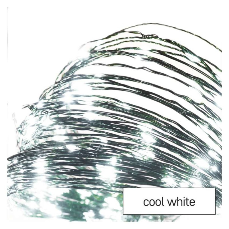 LED karácsonyi nano fényfüzér, zöld, 7,5 m, kültéri és beltéri, hideg fehér, időzítő