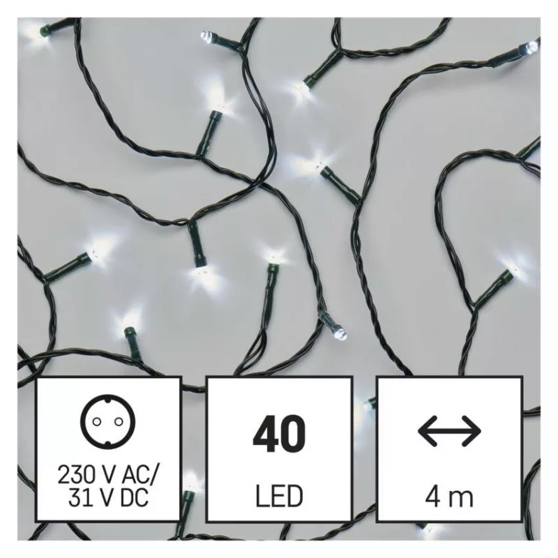 LED karácsonyi fényfüzér, 4 m, kültéri és beltéri, hideg fehér, progr, időz.