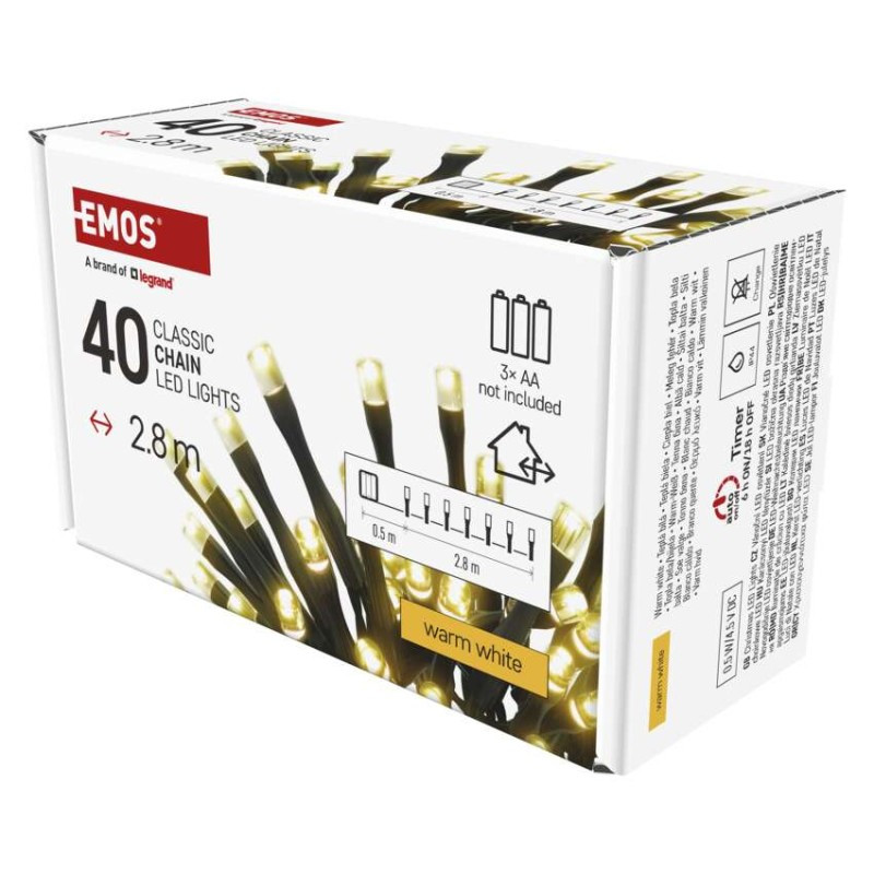 LED karácsonyi fényfüzér, 2,8 m, 3x AA, kültéri és beltéri, meleg fehér, időzítő