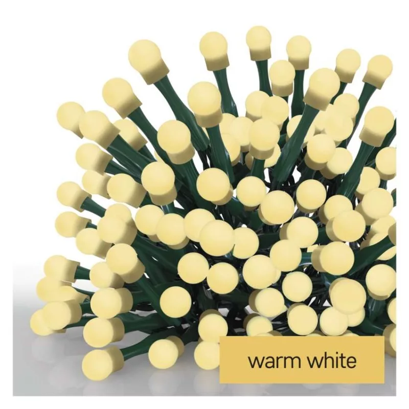 a fa magasságához: 250 cm|alkalmazási nyelvek: –|anyag: PVC|bemeneti feszültség: 230 V AC|csatlakoztatási lehetőség: nem|egyéb funkciók: –|élettartam: 10 000 óra|értékesítési csomagolás: 1 db, doboz|értesítések a mobilalkalmazáshoz: nem|fény színe: meleg fehér|fogyasztás: 6 W|forma: kis golyó|funkció: 8 üzemmód (multifunkcionális)|garancia-időszak: 2 év|hangalapú asszisztensek általi vezérlés: nem|használat: kültéri és beltéri|időzítő: igen|jelátviteli frekvencia: –|kábel színe: zöld|kimeneti feszültség: 31 V DC|kompatibilitás: –|LED-ek közötti távolság: 10 cm|LED-ek száma: 300|LED mérete: 10 mm|méretek: 30 m|protokoll: –|támogatott OS: –|tápellátás típusa: AC (hálózati) adapter|tápvezeték hossza: 5 m|távvezérlő: nem|termék: lánc|védettség: IP44