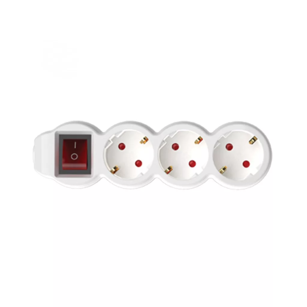 Az NV 3K/WH Kapcsolós hálózati elosztó 3 db aljzattal ellátott, melyet egy fő kapcsolóval áramtalanítani tud. A biztonságos használat érdekében IP 20 védelemmel és gyermekvédelemmel ellátott. A fehér színű elosztó 1,5 m hosszú H05VV-F 3G1,0 mm2 kábellel felszerelt. Maximum 3500 W-ig terhelhető.