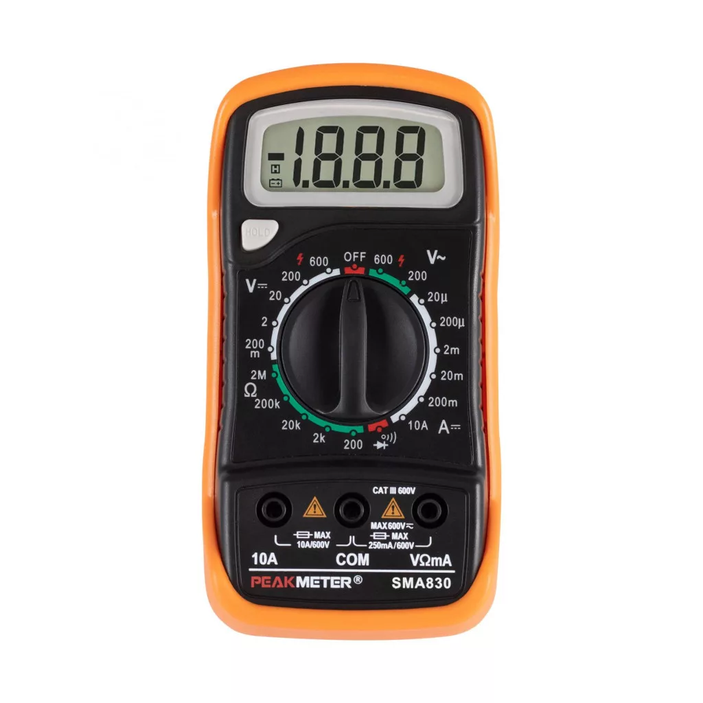 Home SMA 830 digitális multiméter, gyenfeszültség, váltófeszültség, egyenáram, ellenállás mérése, tartozékok: mérőzsinór