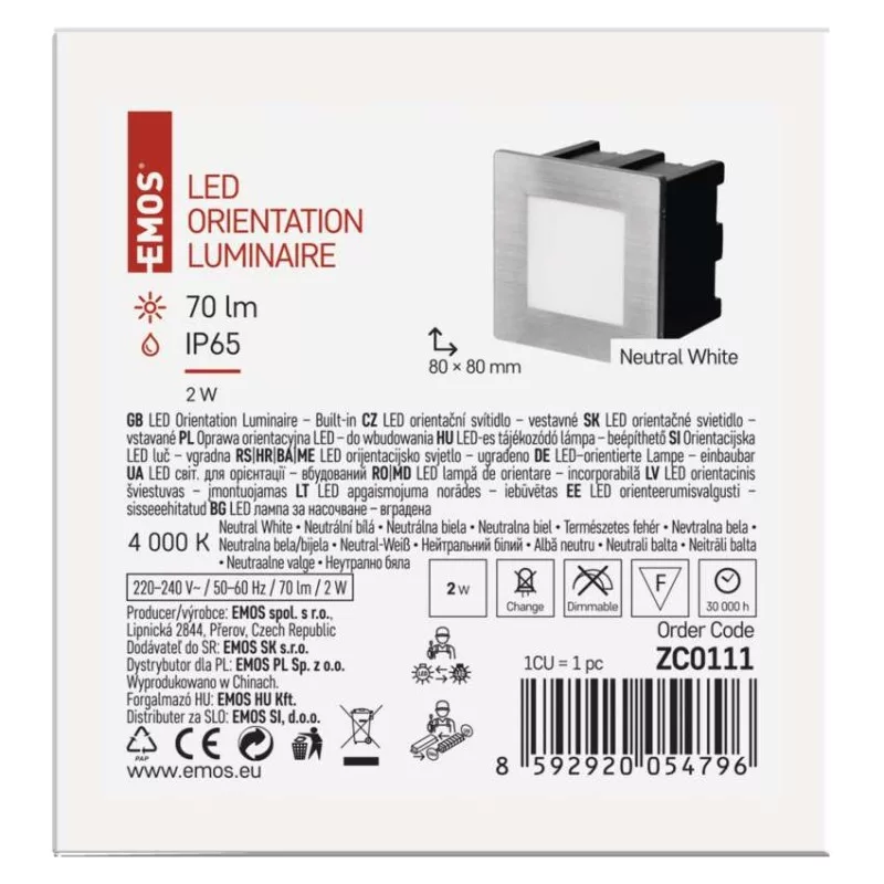 EMOS LED irányfény beépíthető AMAL, négyzet 2W IP65 természetes fehér