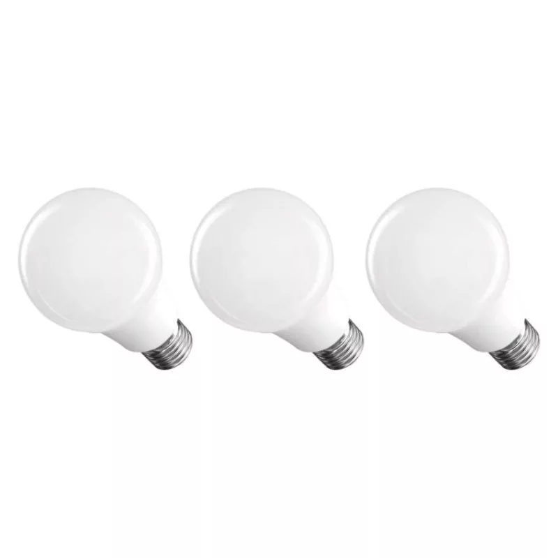 chipek száma: nincs megadva|chipek típusa: SMD|dimmelhető: nem|élettartam: 20 000 óra|energiaosztály: F|értékesítési csomagolás: 3 db, doboz|értesítések a mobilalkalmazáshoz: nem|fényáram: 806 lm|fényhasznosítás: 86 lm/W|fény színe: meleg fehér|feszültség: 230 V~/50 Hz|foglalat: E27|fogyasztás: 9,4 W|forma: A60|garancia-időszak: 2 év|hangalapú asszisztensek általi vezérlés: nem|helyettesítő: 60 W|jelátviteli frekvencia: –|kapcsolási ciklusok száma: 20 000|kompatibilitás: –|méretek: 60 × 60 × 110 (max.) mm|protokoll: –|sorozat: BASIC|sugárzási szög: 200°|színhőmérséklet: 3 000 K|színvisszaadási index (CRI): Ra >80|támogatott OS: –|technológia: LED|teljesítménytényező: 0.50