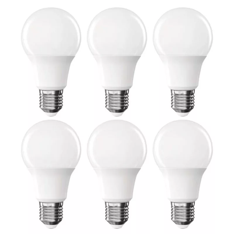 chipek száma: nincs megadva|chipek típusa: SMD|dimmelhető: nem|élettartam: 20 000 óra|energiaosztály: F|értékesítési csomagolás: 6 db, doboz|értesítések a mobilalkalmazáshoz: nem|fényáram: 806 lm|fényhasznosítás: 92 lm/W|fény színe: meleg fehér|feszültség: 230 V~/50 Hz|foglalat: E27|fogyasztás: 8,8 W|forma: A60|garancia-időszak: 2 év|hangalapú asszisztensek általi vezérlés: nem|helyettesítő: 60 W|jelátviteli frekvencia: –|kapcsolási ciklusok száma: 20 000|kompatibilitás: –|méretek: 60 × 60 × 110 (max.) mm|protokoll: –|sorozat: BASIC|sugárzási szög: 200°|színhőmérséklet: 3 000 K|színvisszaadási index (CRI): Ra >80|támogatott OS: –|technológia: LED|teljesítménytényező: 0.50