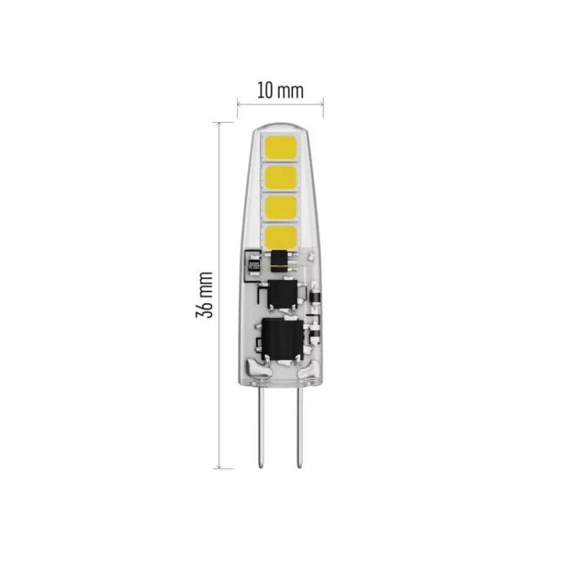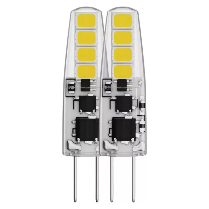 chipek száma: nincs megadva|chipek típusa: SMD|dimmelhető: nem|élettartam: 30 000 óra|energiaosztály: F|értékesítési csomagolás: 2 db, doboz|értesítések a mobilalkalmazáshoz: nincs megadva|fényáram: 200 lm|fényhasznosítás: 105 lm/W|fény színe: meleg fehér|feszültség: 12 V|foglalat: G4|fogyasztás: 1,9 W|forma: JC|garancia-időszak: 3 év|hangalapú asszisztensek általi vezérlés: nincs megadva|helyettesítő: 21 W|jelátviteli frekvencia: nincs megadva|kapcsolási ciklusok száma: 25 000|kompatibilitás: nincs megadva|méretek: 36 × 10 × 10 mm|protokoll: nincs megadva|sorozat: CLASSIC|sugárzási szög: 300°|színhőmérséklet: 3 000 K|színvisszaadási index (CRI): Ra >80|támogatott OS: nincs megadva|technológia: LED|teljesítménytényező: 0.71