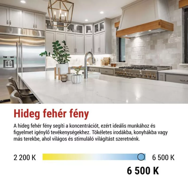 chipek száma: –|chipek típusa: SMD|dimmelhető: nem|élettartam: 30 000 óra|energiaosztály: D|értékesítési csomagolás: 1 db, kis doboz|értesítések a mobilalkalmazáshoz: –|fényáram: 1 000 lm|fényhasznosítás: 143 lm/W|fény színe: hideg fehér|feszültség: 220-240 V~|foglalat: GU10|fogyasztás: 7 W|forma: MR16|frekvencia: 50/60 Hz|garancia-időszak: 3 év|hangalapú asszisztensek általi vezérlés: –|helyettesítő: 72 W|jelátviteli frekvencia: –|kapcsolási ciklusok száma: 30 000|kompatibilitás: –|méretek: 50 × 50 × 58 mm|protokoll: –|sorozat: CLASSIC|sugárzási szög: 100°|színhőmérséklet: 6 500 K|színvisszaadási index (CRI): Ra >80|támogatott OS: –|technológia: LED|teljesítménytényező: 0.50