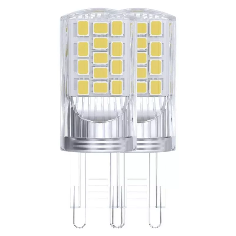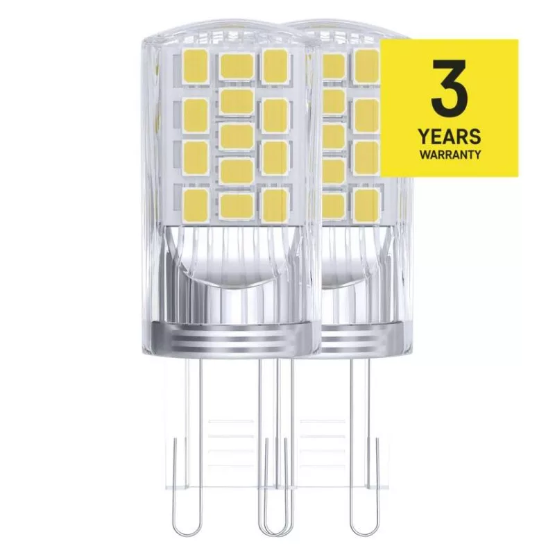chipek száma: 34|chipek típusa: SMD|dimmelhető: nem|élettartam: 30 000 óra|energiaosztály: E|értékesítési csomagolás: 2 db, doboz|értesítések a mobilalkalmazáshoz: –|fényáram: 470 lm|fényhasznosítás: 118 lm/W|fény színe: természetes fehér|feszültség: 230 V~/50 Hz|foglalat: G9|fogyasztás: 4 W|forma: JC|garancia-időszak: 3 év|hangalapú asszisztensek általi vezérlés: –|helyettesítő: 40 W|jelátviteli frekvencia: –|kapcsolási ciklusok száma: 25 000|kompatibilitás: –|méretek: 52 × 19 × 19 mm|protokoll: –|sorozat: CLASSIC|sugárzási szög: 320°|színhőmérséklet: 4 000 K|színvisszaadási index (CRI): Ra >80|támogatott OS: –|technológia: LED|teljesítménytényező: 0,47