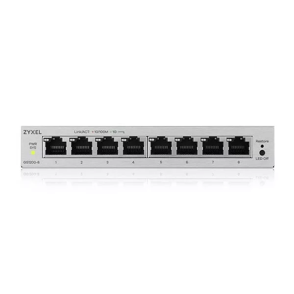 ZYXEL Switch 8x1000Mbps Fémházas Asztali, Web menedzselés, GS1200-8V3-EU0101F