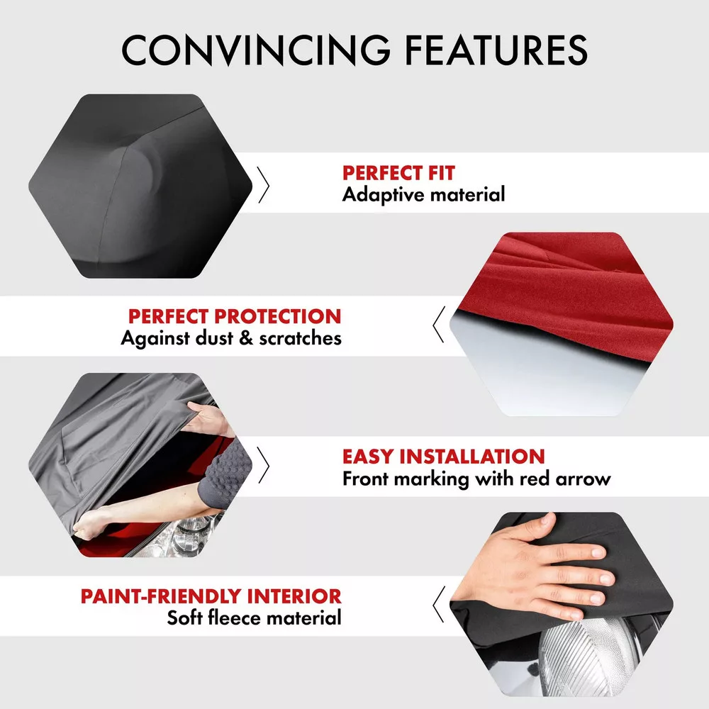 • Tökéletes illeszkedés a szuperelasztikus anyagnak köszönhetően – úgy körbeveszi az autót, mint egy második bőr