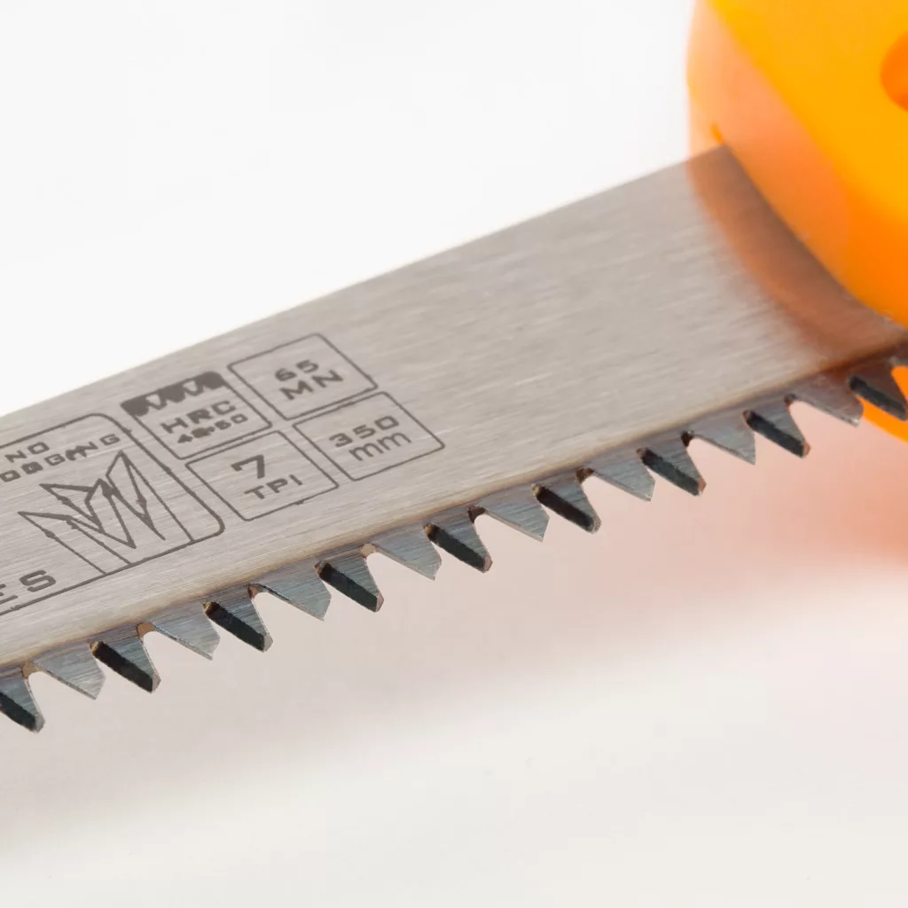 Nyitott, formatervezett markolattal szerelt kézifűrész, fafűrész. Gyors és pontos vágást biztosító rugalmas fűrészlappal és edzett fogakkal rendelkezik. Alkalmas mindenféle faanyag vágására.