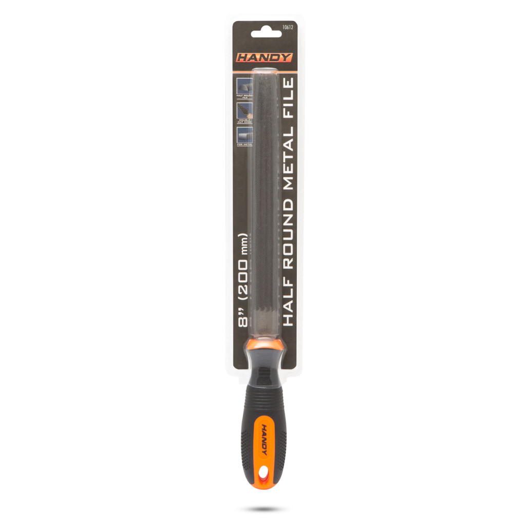 Minőségi, 200 mm hosszú, gumírozott nyelű reszelő. Félkör alakú, edzett, kétszeres metszésű reszelőlappal, amely kiválóan használható faanyagokhoz és fémekhez. Az ergonómikus gumírozott nyél biztosítja a kényelmes fogást és a biztonságot a munkavégzés során. Tökéletes választás, ha éles sarkokat, vágáséleket kell reszelni.