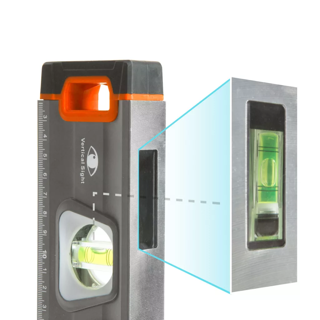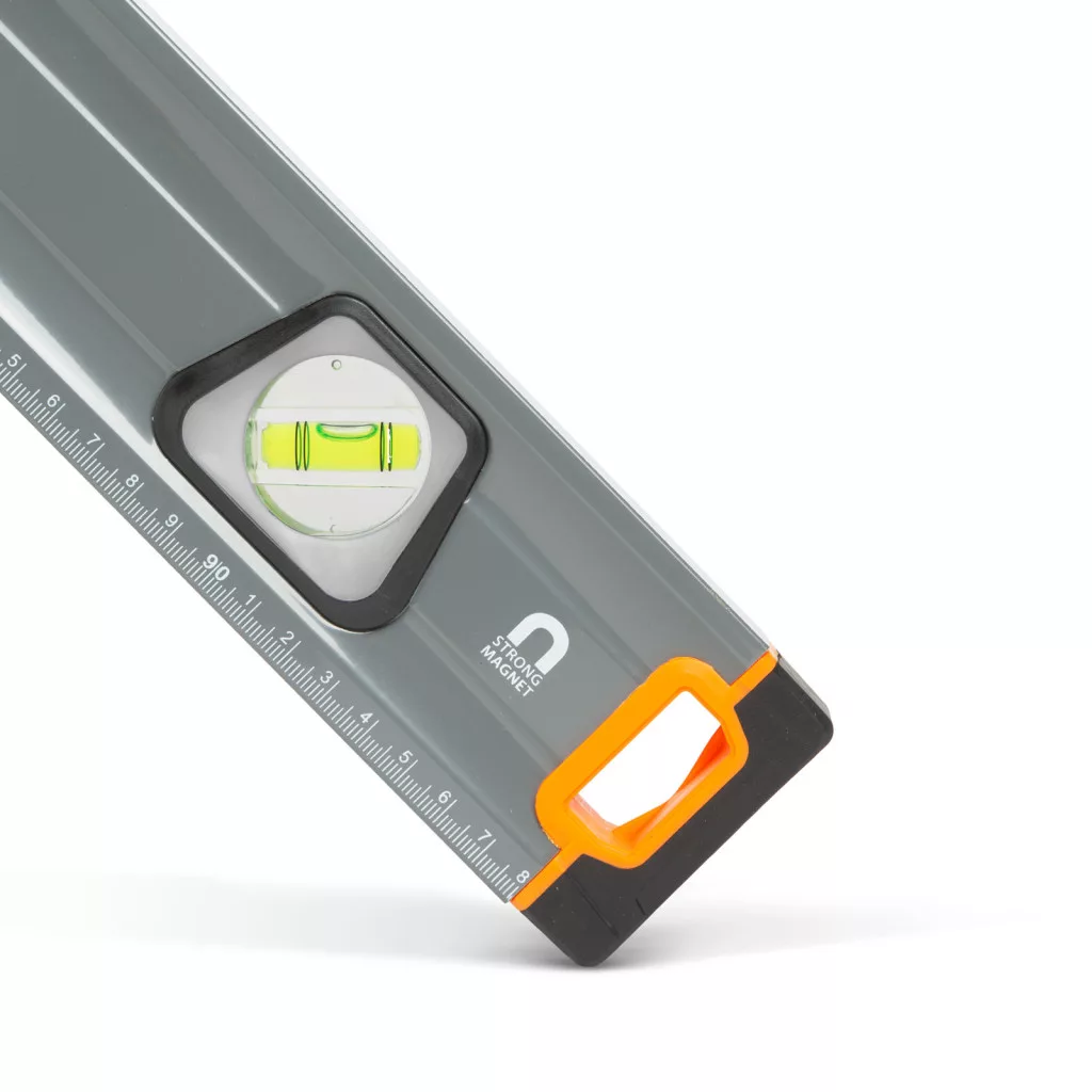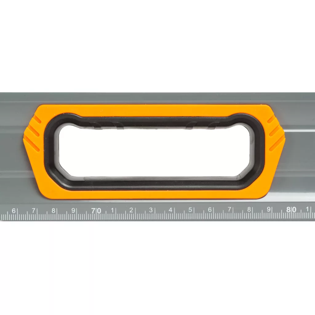 Professzionális vízmérték 3 db elektronikusan kalibrált libellával. Minőségi, nagy szilárdságú festett alumínium boxból készült, amelynek a végén stabil gumi végütköző található. Az eszköz teljes hosszában skálázott vonalzó, mérések során lehet hasznos. 2 db belső, gumírozott fogantyú segíti a stabil tartást bármilyen helyzetben. Az oldalélen található tükörrel ellátott betekintőablaknak köszönhetően szűk helyeken is leolvasható a függőleges libella. Ideális felhasználási terület lehet építkezéseken, felújításokon, segítségével biztosan nem lesznek többé ferde síkok, felületek.