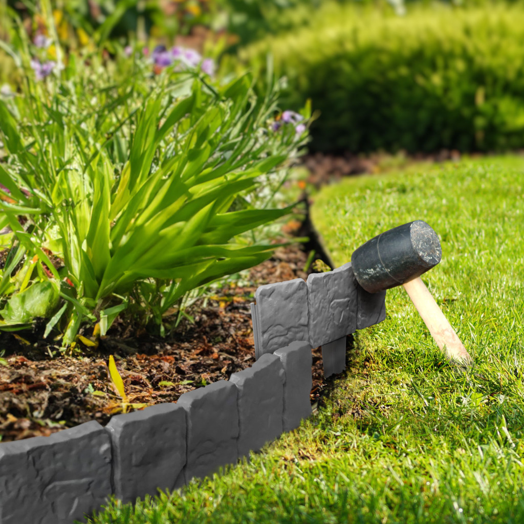 Virágágyások, kerti utak, járdák, gyepszegély kiépítéséhez tökéletes eszköz. A füvet, kavicsot, mulcsot, esztétikusan határolja el egymástól. A kő utánzatnak köszönhetően beleillik a természetbe. Rendkívül könnyen, gyorsan telepíthető. Javasolt továbbá parkosított, füvesített területen a fákat, fenyőket és egyéb ültetett növényeket tetszőleges átmérőben körbevenni vele.