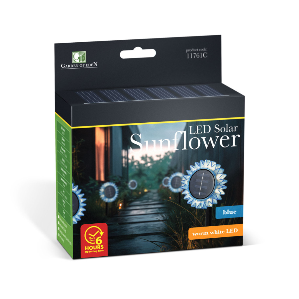Szolár napraforgó - kék - leszúrható / felakasztható - 13 x 6,5 x 35 cm
