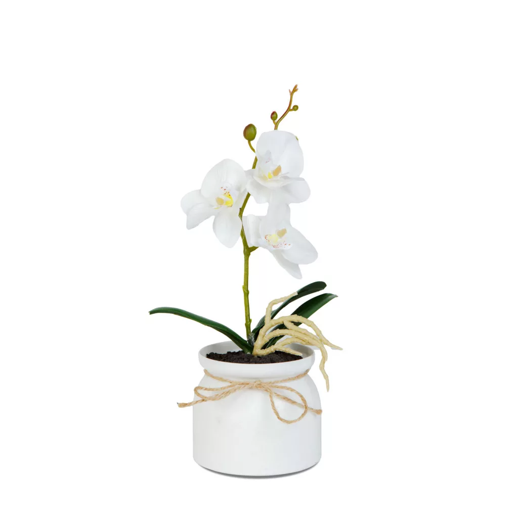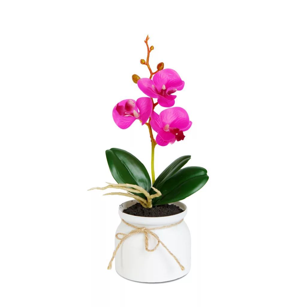 Elegáns és gondozásmentes dísznövény, amely természetes megjelenésével bármely helyiség hangulatát feldobja. A részletgazdagon kidolgozott orchidea virágok és a valósághű levelek élethű hatást keltenek, miközben nem igényelnek öntözést vagy különösebb ápolást. Kompakt méretének és esztétikus kaspójának köszönhetően ideális választás irodába, nappaliba, hálószobába vagy akár recepciós pultra is. A dekoráció különböző színváltozatban érhető el, így könnyedén illeszthető bármilyen enteriőrhöz.