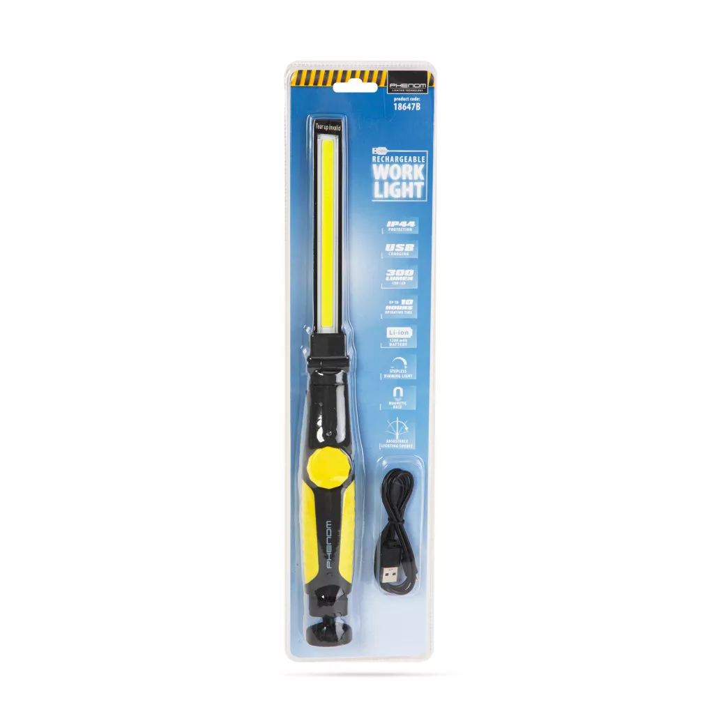 Dimmelhető, nagy fényerejű COB LED-del szerelt munkalámpa. Nem hiányozhat egyetlen garázsból, műhelyből sem. A COB LED technológiának, a gömbcsuklós mágneses talpnak és a vertikálisan 270, horizontálisan 160°-ban állítható fejnek köszönhetően mindig bevilágítja a kivánt munkaterületet. Beépített Li-ion akkumulátora környezetbarát eszközzé teszi, amely hosszantartó fényerővel is rendelkezik.