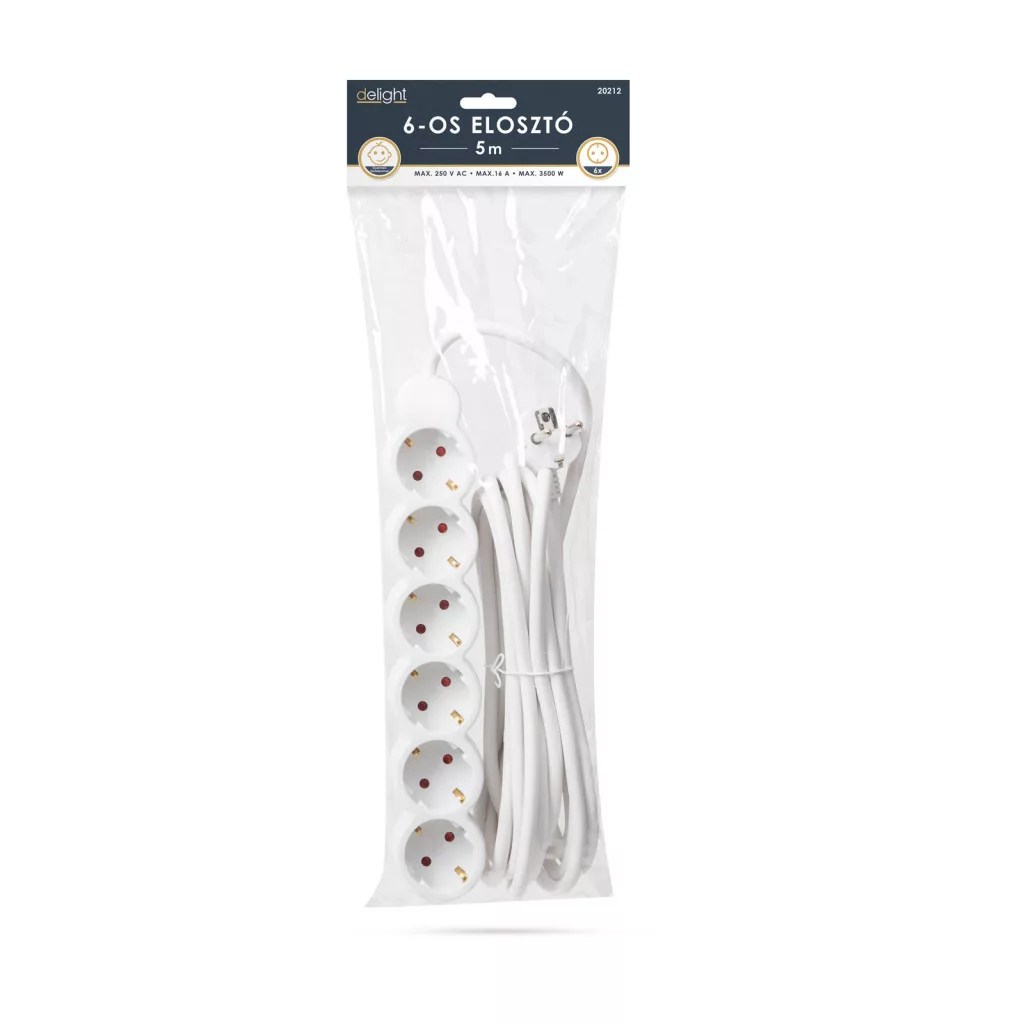 Általános, fehér elosztó, amely használata javasolt háztartásban, irodákban. Jó minőségű, vastag szigetelése megvédi a kábelt a sérülésektől, a kábel esetleges megtörésétől.