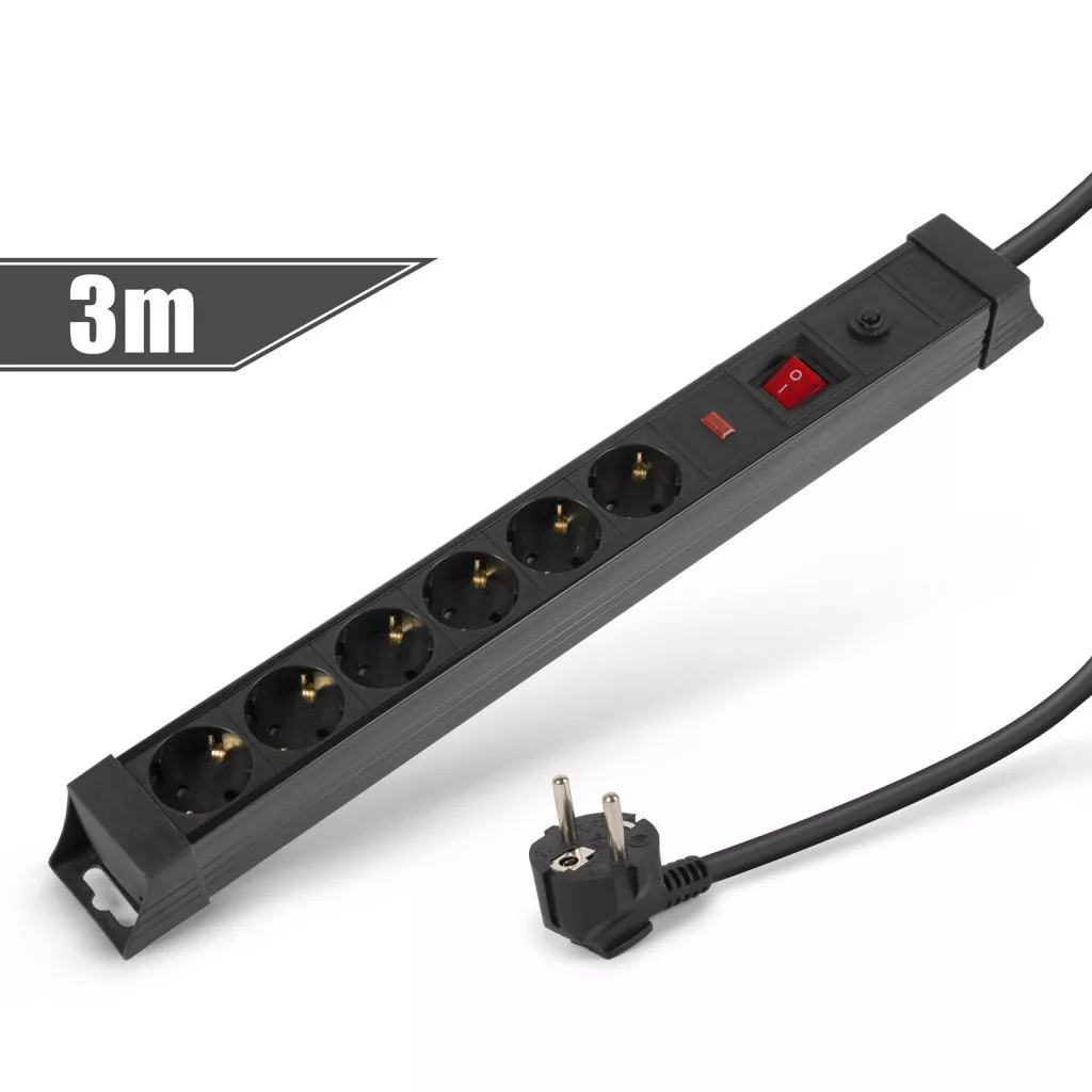 Általános, fekete, nagyméretű elosztó, amely használata javasolt háztartásban, irodákban. Jó minőségű, vastag szigetelése megvédi a kábelt a sérülésektől, a kábel esetleges megtörésétől. A hosszabbító házára feltekerhető a kábel.