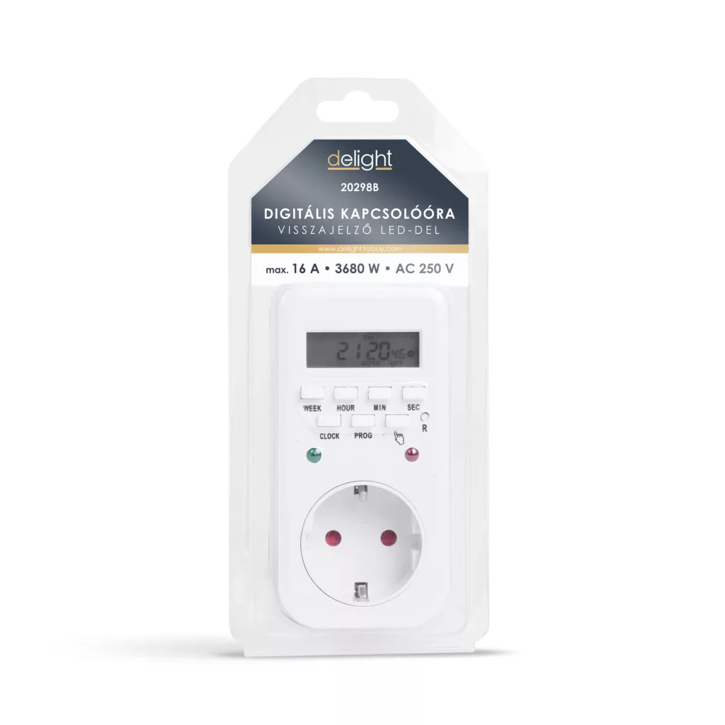 Digitális kapcsolóóra - visszajelző LED-del - 250V - 16A