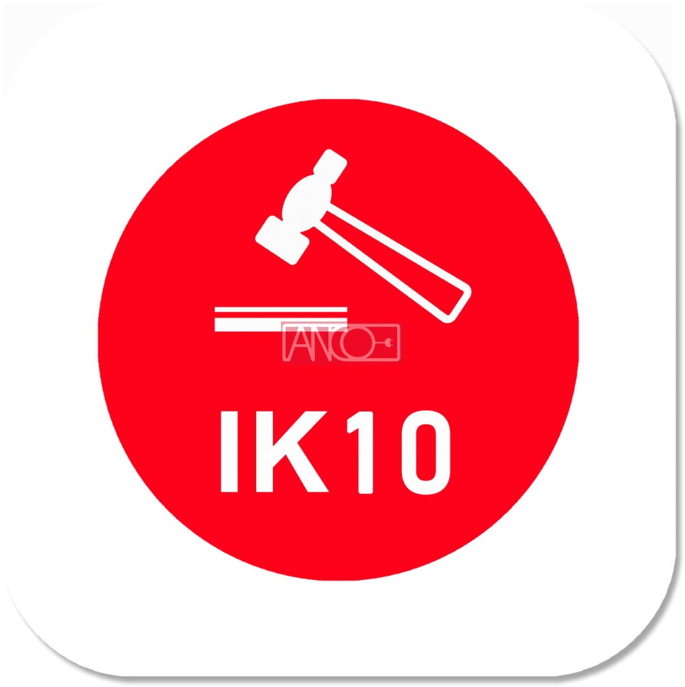 - ütésálló házburkolat, IK10: ez a hatás egyenértékű azzal ha egy 5 kg súlyú tömeg leesik 400 mm-ről a felületre
