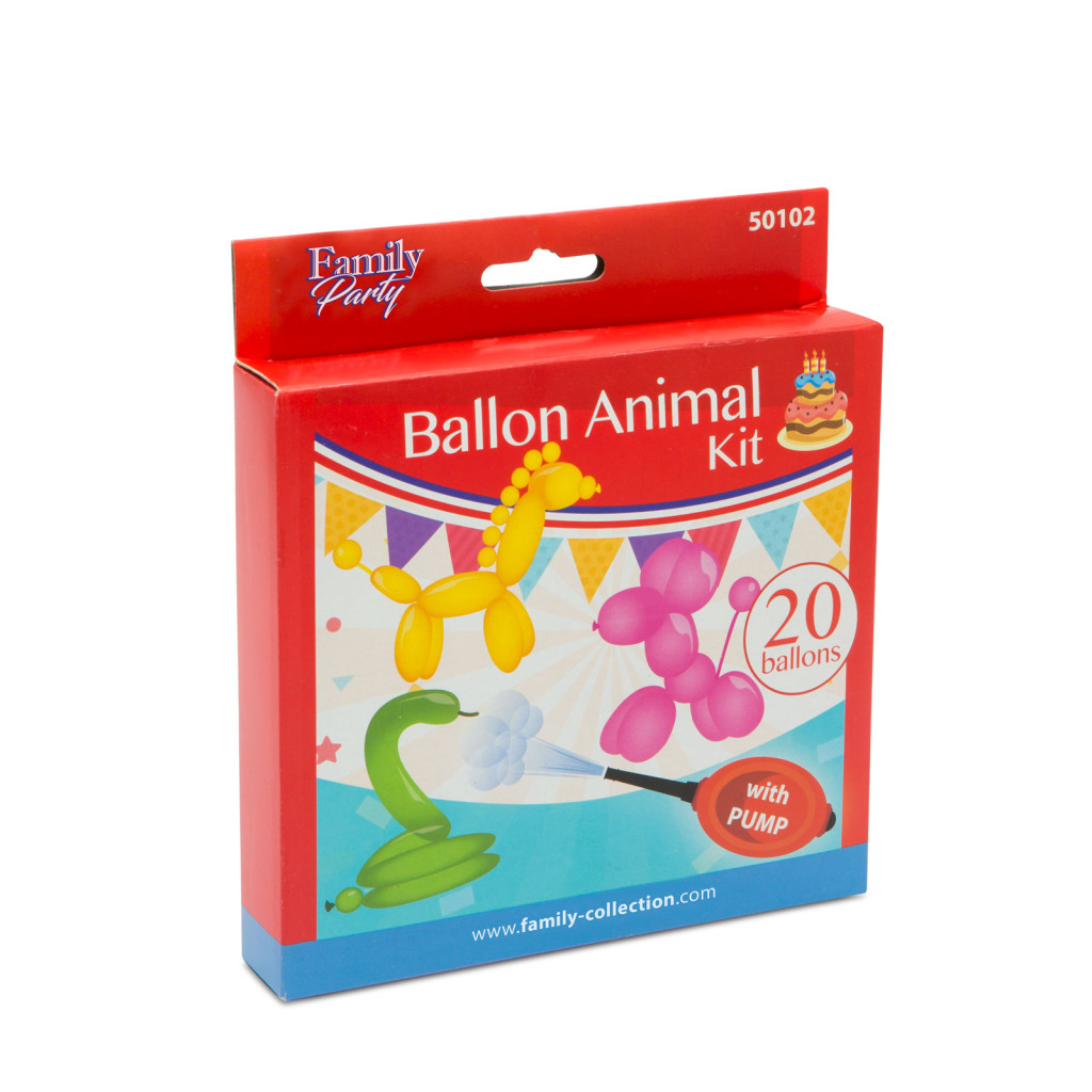 Felfújható, hajtogathatós lufi, nélkülözhetetlen kelléke partiknak, gyerekzsúroknak. Többféle szín egy dobozban, így a hajtogatásnak csak a képzelet szabhat határt. A gyors felfújás érdekében kézi pumpával a dobozban.