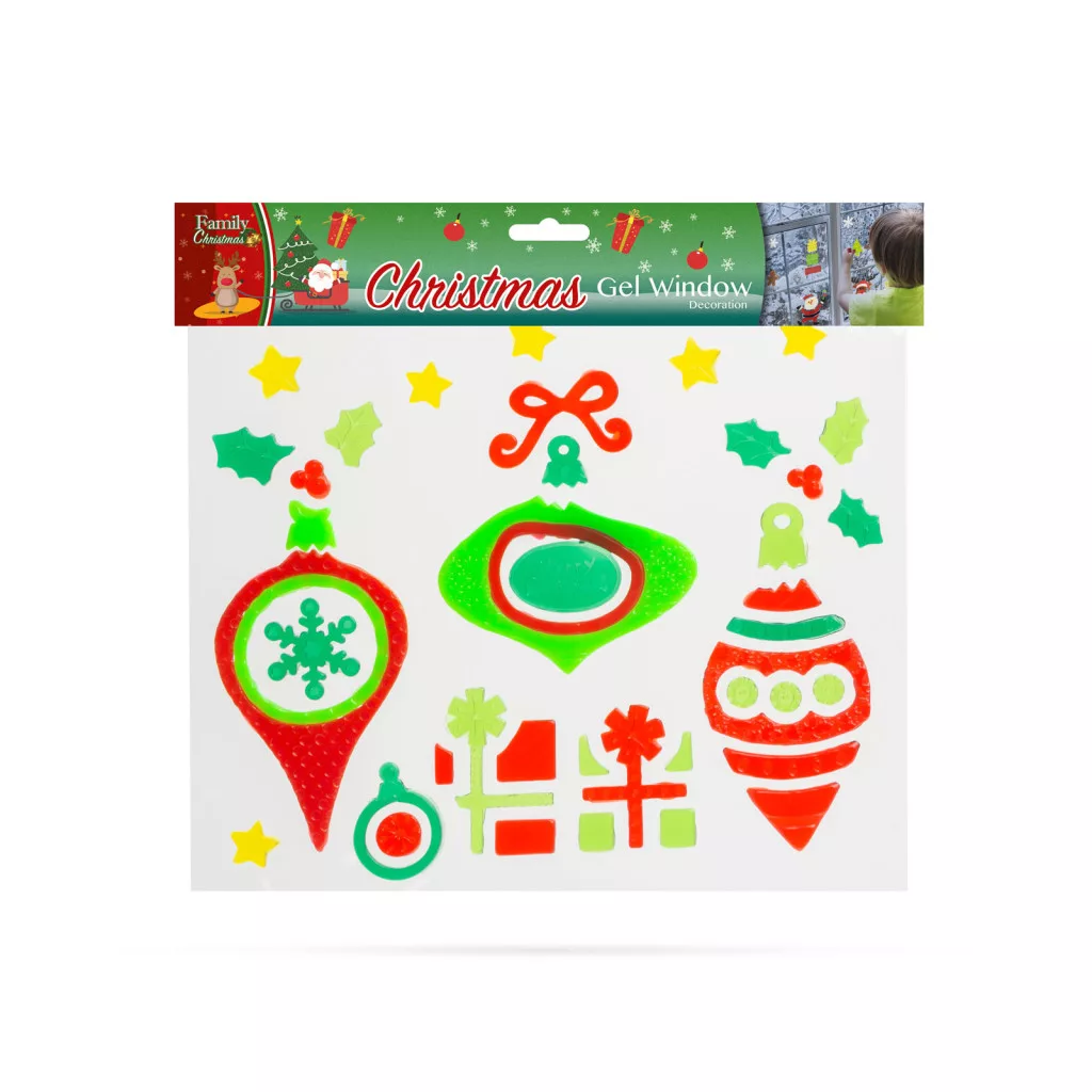 Vidám, karácsonyi ablakdekor az ünnepi hangulat megteremtéséhez. A gél matricák külön-külön felhelyezhetőek, így tetszőlegesen elrendezhetőek az ablakon. Könnyen felragasztható és nyom nélkül eltávolítható. Ragasztóanyagot nem tartalmaz, maga a gél ragad, amely langyos vízzel mosható, így újra felragad az üvegfelületre.