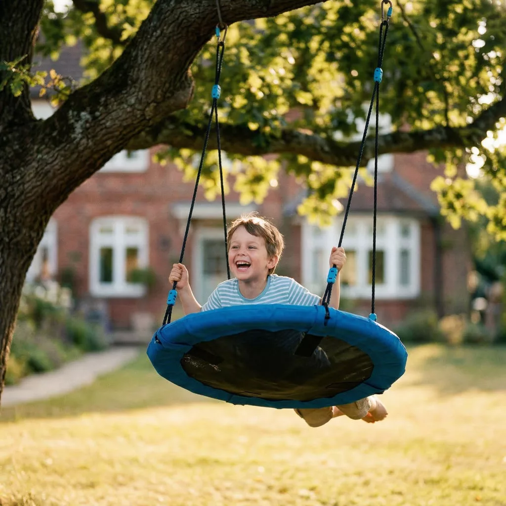 A 90 cm átmérőjű fészekhinta igazi kedvenc a gyerekek körében: kényelmes, stabil és többféleképpen használható. A kör alakú ülőfelület biztonságos és kellemes hintázást biztosít, legyen szó pihenésről, játékos ringatózásról vagy akár fekvő helyzetű lazításról. Ideális választás kertbe, udvarra vagy játszótérre. A masszív váz és az erős függesztőkötelek gondoskodnak a tartósságról, miközben a strapabíró ülőfelület hosszabb használat során is megőrzi formáját. A fészekhinta könnyen felszerelhető fára, hintakeretre vagy játszótéri állványra.