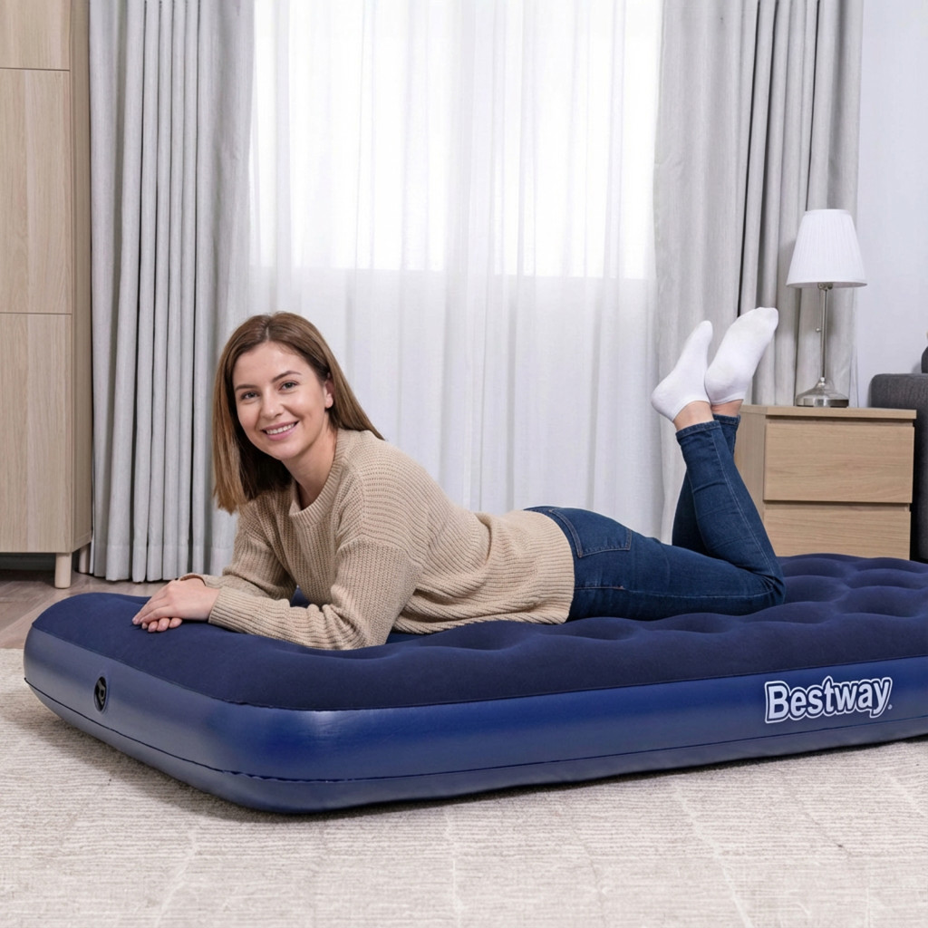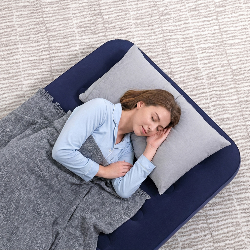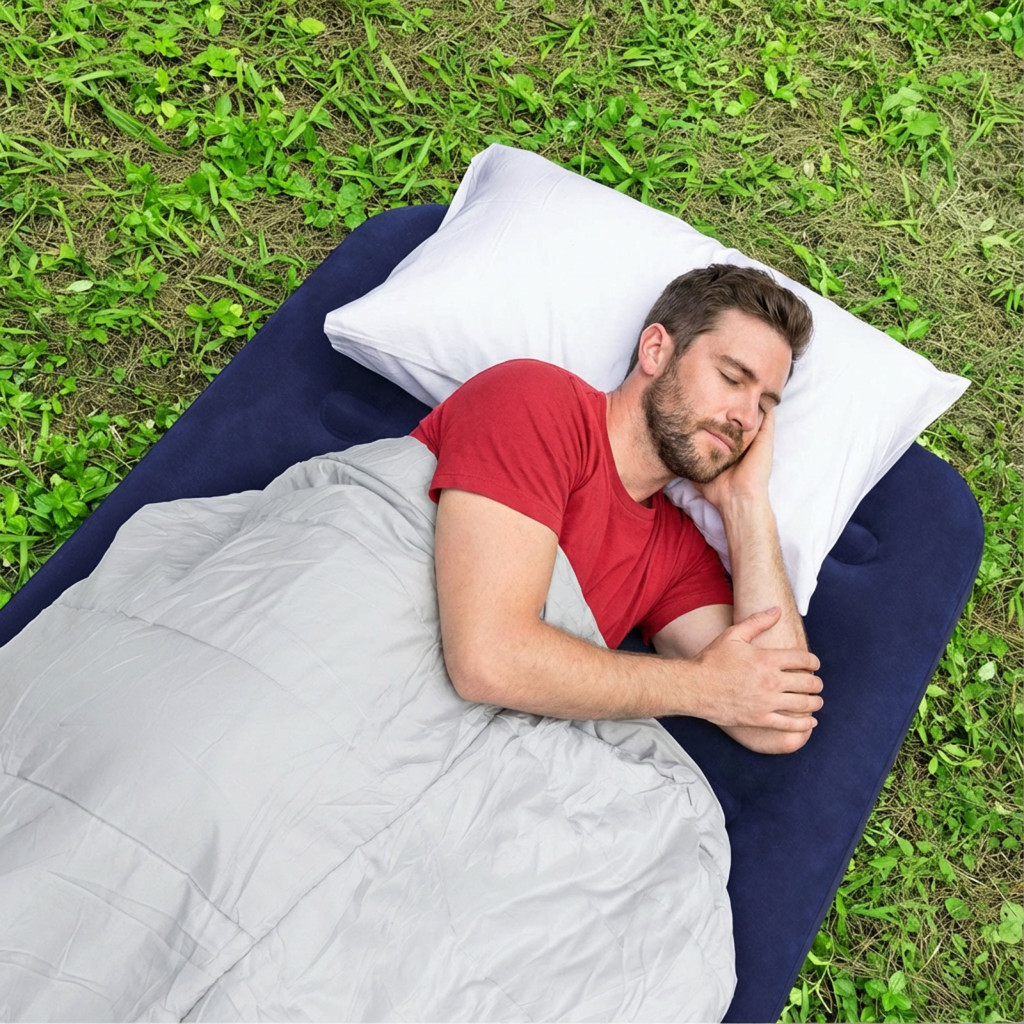 Felfújható matrac - egyszemélyes, velúr - kék - 188 x 99 x 22 cm