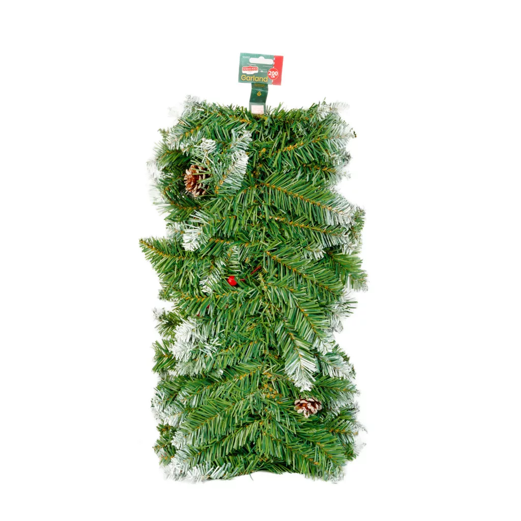 Fenyő girland - zöld, havas - 200 cm - PVC