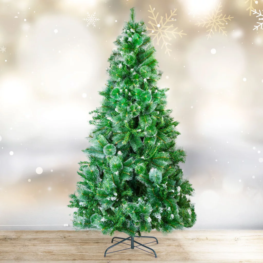 Teremtsen meghitt ünnepi hangulatot ezzel a gyönyörű havas műfenyővel! A sűrű fenyőágak végét hó borítja, amely természetes és elegáns megjelenést kölcsönöz a karácsonyfának. A gondosan kidolgozott tűlevelek és az ágak elrendezése tökéletes alapot biztosítanak kedvenc díszei számára. Könnyen összeállítható és évről-évre újra felhasználható. Az időtálló anyagok biztosítják, hogy hosszú ideig megőrizze szépségét, anélkül hogy színe megfakulna vagy levelei lehullanának.