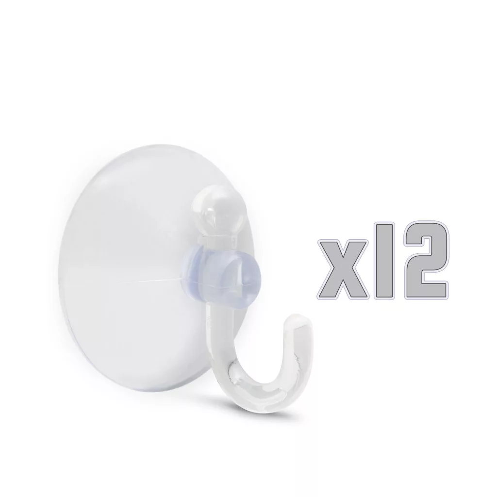 12 darabos akasztó szett, mely tapadókorongos hátuljának köszönhetően stabilan fennmarad a síkfelületeken.