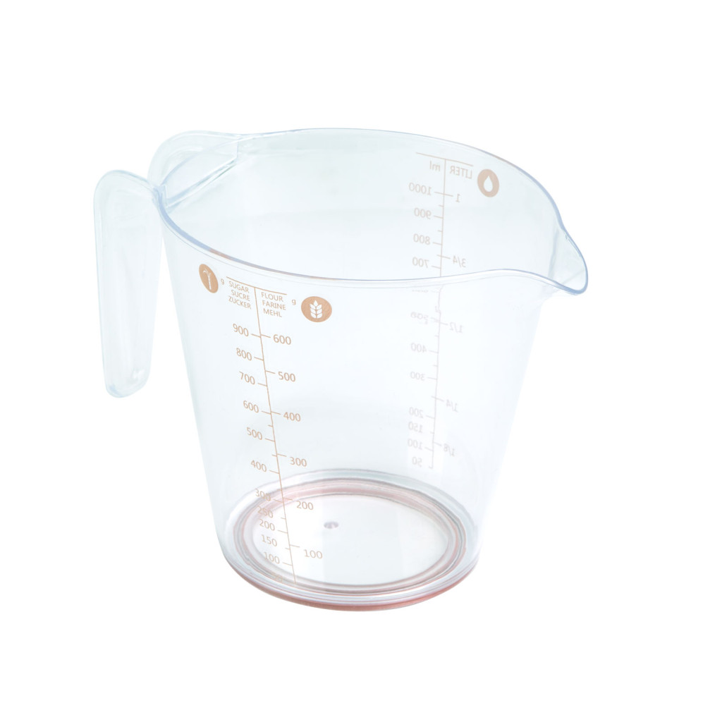 Skálázással elátott mérőpohár, amely segítségével pontosan követheti a receptek által előírt mennyiségeket. Maximum 1000 ml folyadék, 900 g cukor vagy 600 g liszt kimérésre alkalmas mérőkancsó.
