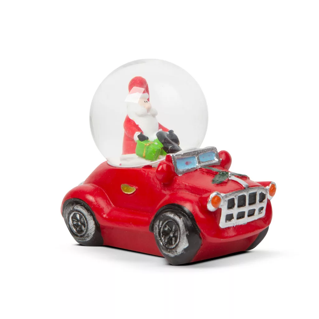 Karácsonyi hógömb - Mikulás autóval - 8,5 x 5,6 x 7 cm