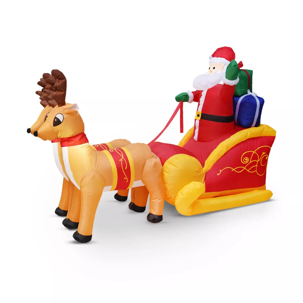Felfújható Mikulás szán - 230 cm - IP44 - 9 fehér LED - 100 - 240 V