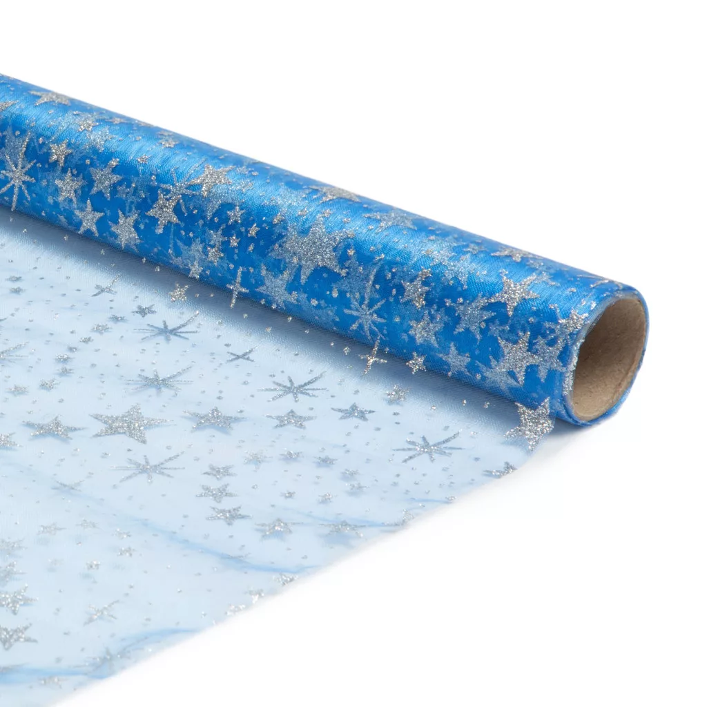 Karácsonyi asztalterítő futó -  világoskék / ezüst - 180 x 28 cm