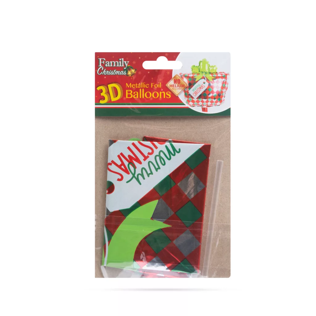 Karácsonyi lufi - ajándék - alumínium - 30 x 18 cm