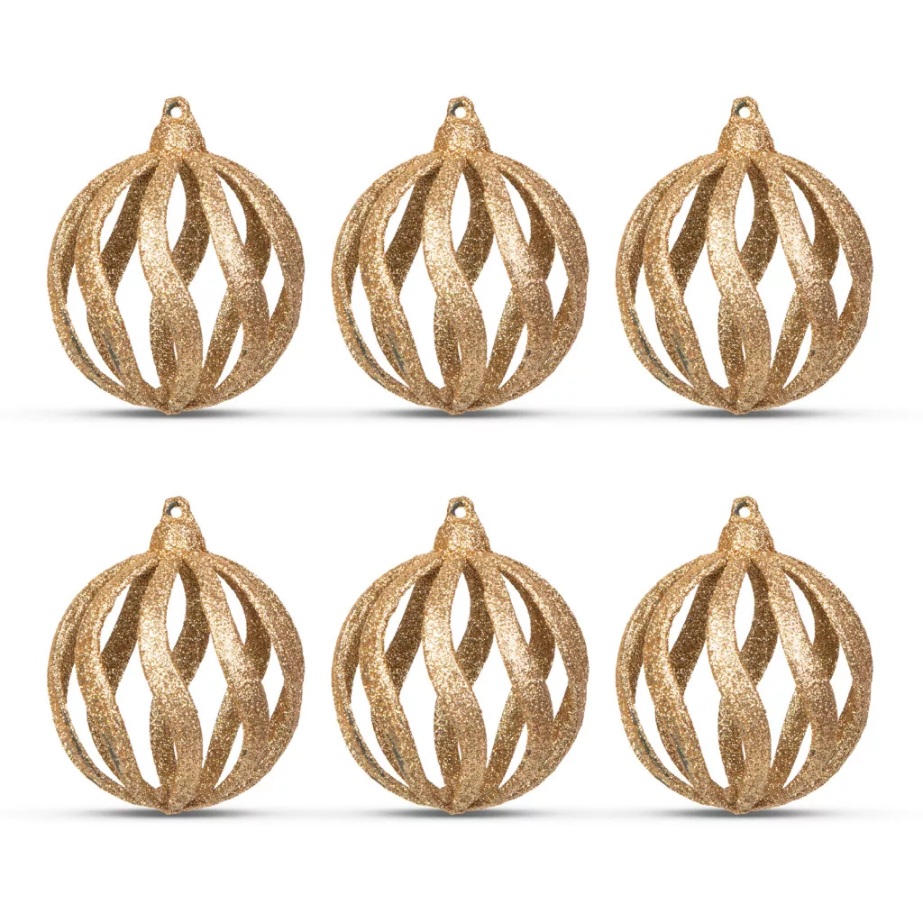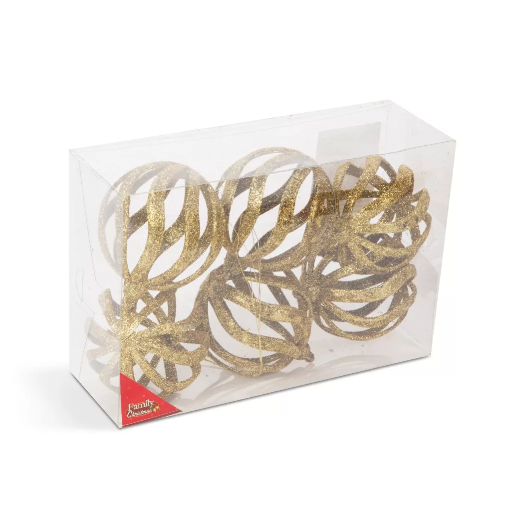 Karácsonyfadísz szett - glitteres arany gömbdísz - 7 cm - 6 db / csomag
